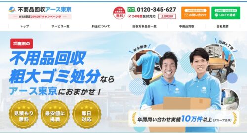 5つめに紹介する三鷹市のウォーターサーバー処分でおすすめの業者は、不用品回収アース東京です。